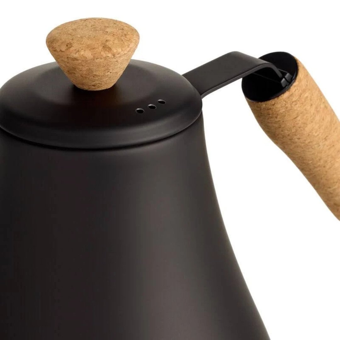 Elevate your coffee and tea rituals with the Jewelshrine Gooseneck Electric Kettle, designed for precision, style, and everyday performance. With its sleek matte black body and natural cork handle and lid knob, this kettle blends modern elegance with warm, organic textures—making it a standout piece in any kitchen or coffee bar.